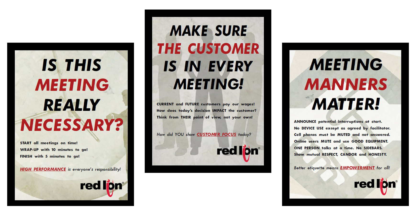 Back when I was President of Red Lion Controls, I got to indulge my creative side by designing a series of posters for our various meeting rooms. They were slightly tongue-in-cheek, with their World War II propaganda poster aesthetic and somewhat forced attempts to link to what were at the time the Spectris values, but they nonetheless made a series of important points.